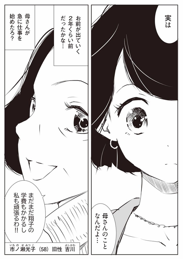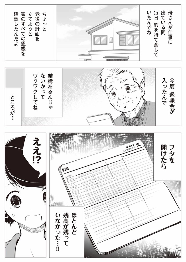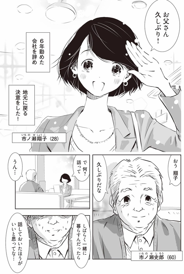 6年勤めた仕事を辞め、実家に戻った翔子は、母が父の退職金を口座から引き出し、使い込んでいると知らされる。