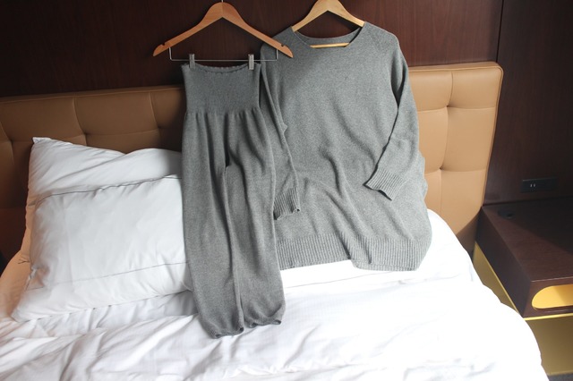 「ホールガーメント®といって、無縫製のナイトウェアです。身頃と袖の縫い合わせがないからゴワゴワした感じがなく、肌当たりがやさしいので睡眠の妨げにならないのがいいんです。あとは編み方を変えて立体的な形を作っているからシルエットがきれいなのも魅力!