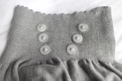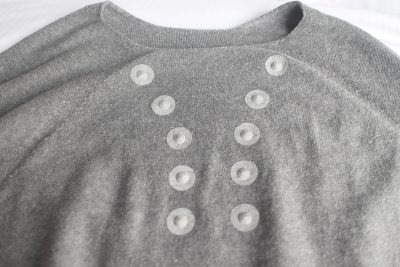 トップスを裏返したところ。肩コリに関係している背中の筋肉「僧帽筋」の血行を改善できるように配置された磁石。