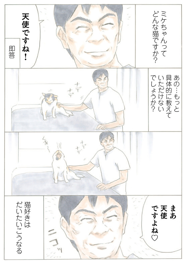 ミケちゃんが治療室で暮らすようになった頃、通りかかった新聞配達員さんが室内にいるミケちゃんを見て