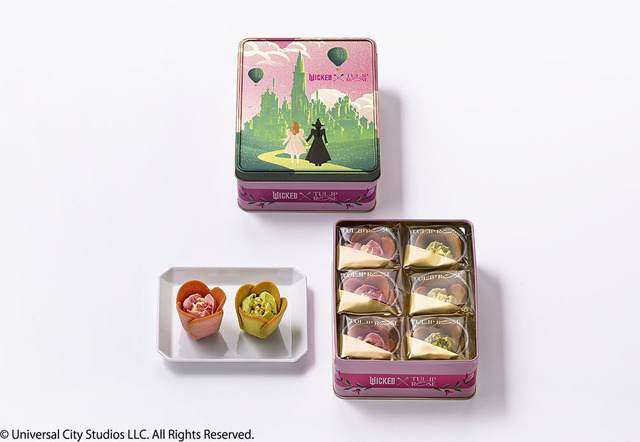 「チューリップローズ <WICKED>」は、グリンダを思わせるピンクが印象的なスペシャル缶。春限定のストロベリーバターと、映画とのコラボ限定ピスタチオバターの2味の詰合せ。