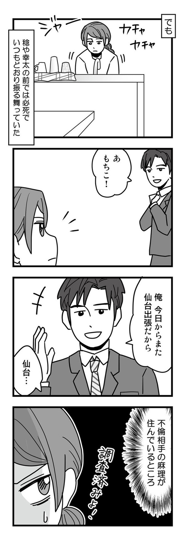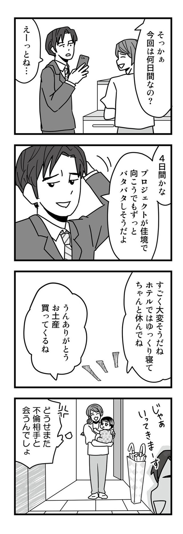 しかし夫は仕事や出張と偽り、不倫相手と密会を重ねていた。