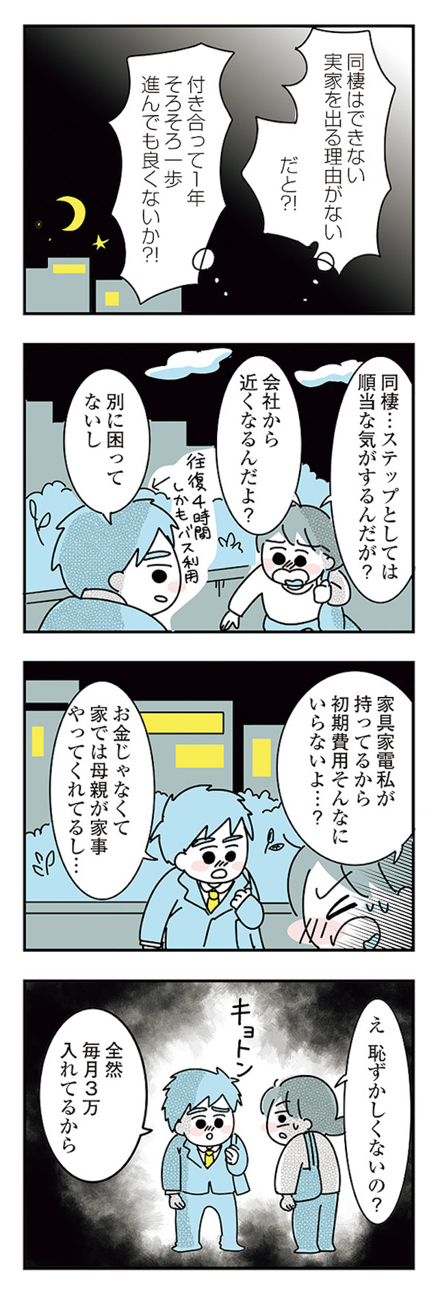 彼も同じ気持ちだと思っていたら、「俺が実家を出る理由がない」と同棲を断られる。