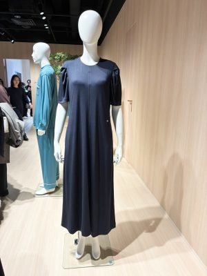 26年春夏発表会には「これ欲しい!」と思うアイテムがたくさん。まずはこの「マキシレングスシャツ」! 秋冬で人気だった長袖の半袖バージョンです。一番人気はブラック、続いてネイビーですが、じつはモーヴピンクもおしゃれ度が高い!
