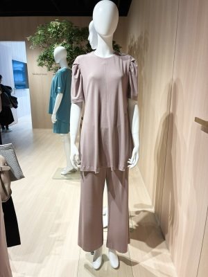 右・ReFa VITALWEAR 本部長 三上さんが着ているのは、長袖バージョンのモイストスムース ギャザースリーブプルオーバー(20,900円)。左・ブランドインストラクター 小林さんが着ているのがモイストスムース ギャザースリーブマキシレングスシャツ(28,600円)。もう、リカバリーウェアで何の迷いもなく通勤できる時代がきていますね……。