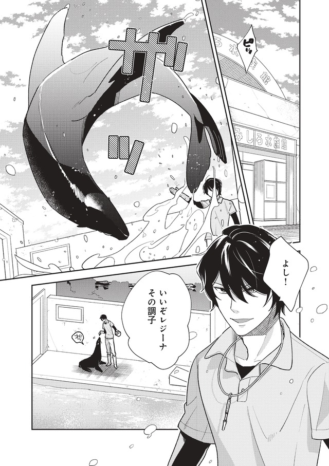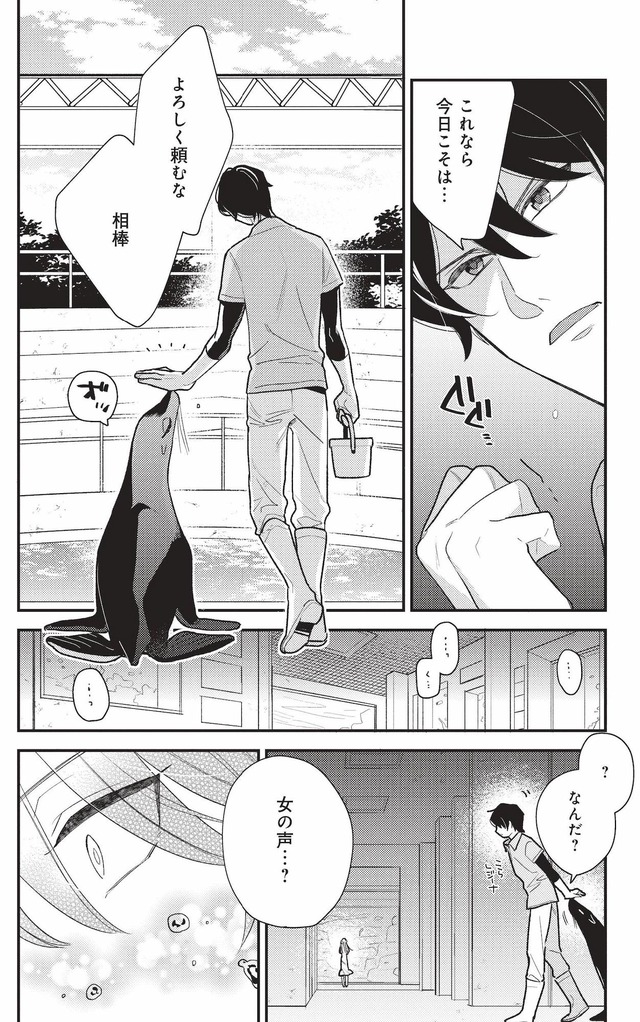 大水槽の前で涙を流していると、コワモテなイケメン飼育員・渡来に「そこに長時間居座ンな」と凄まれ、