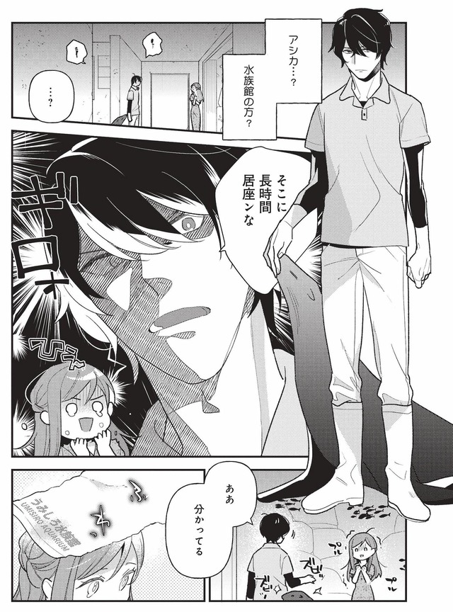 大水槽の前で涙を流していると、コワモテなイケメン飼育員・渡来に「そこに長時間居座ンな」と凄まれ、