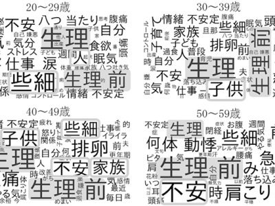 1年前に開催された第39回の同学術集会では、同じく小林製薬のチームが『命の母』チャットボットのデータ解析を行い、「年齢ごとに不定愁訴が変化していく」(図1)「イライラの原因も変化していく」(図2)ことを突き止めた論文が賞を受賞しています。林さんの研究はその後継なのでしょうか?