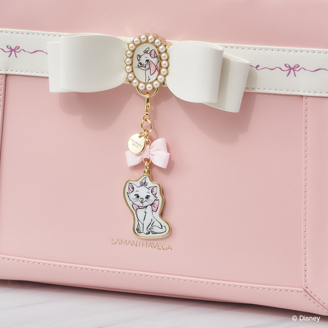 マリーをイメージしたピンクとホワイトのショルダーバッグやハンドバッグは、リボンの下にチャームが付けられるような仕様になっており、同シリーズのチャームを付けるのがおすすめ。