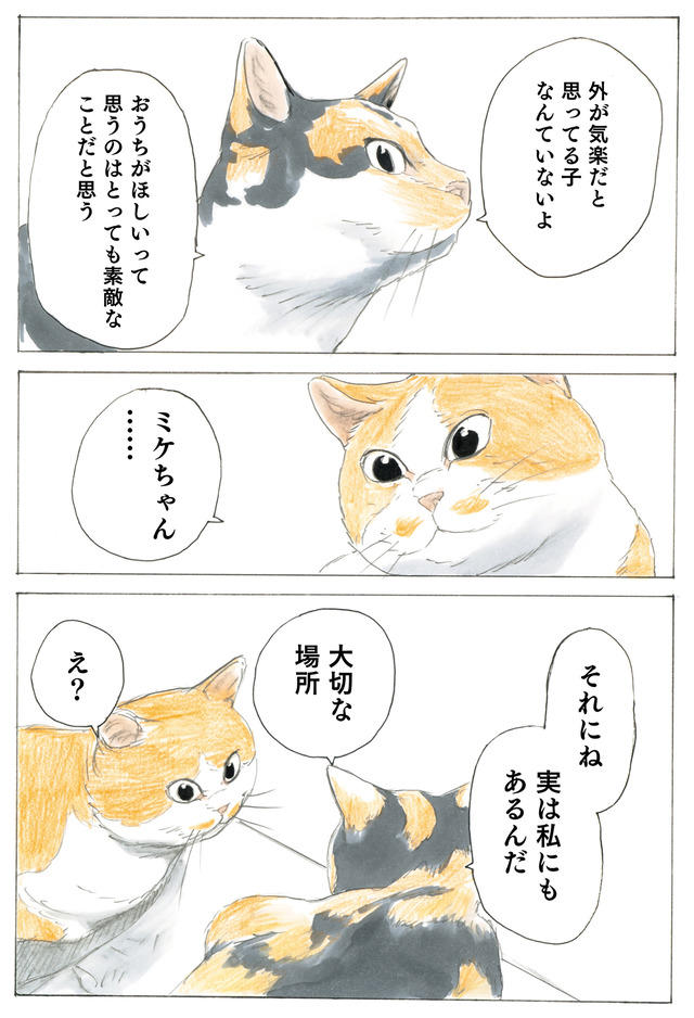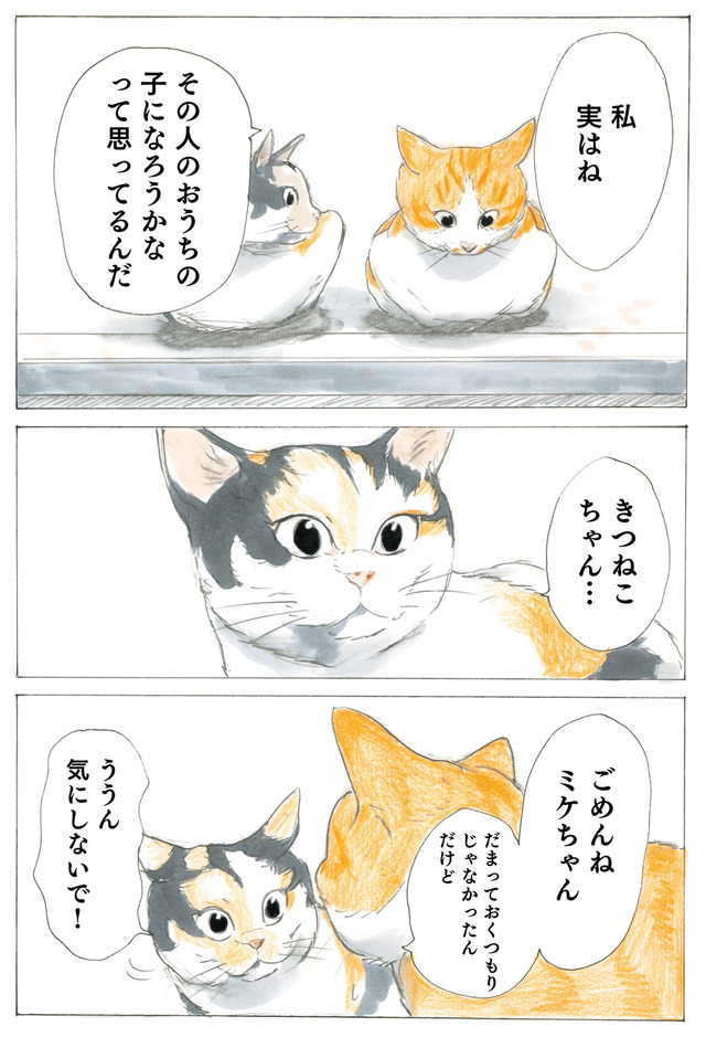 ミケちゃん「きつねこちゃん元気でね。お互いずっとのお家で幸せに暮らそうね」