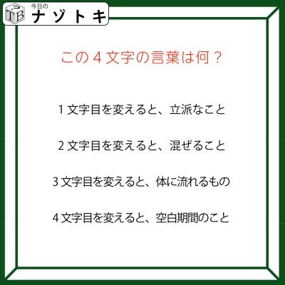 文字を変化させてできる4つの単語から正解を考えるナゾトキでした。
