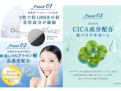 ニードルパッチとは、その名の通り「ニードル(針)」が敷き詰められたシート状の「パッチ」。針はヒアルロン酸やなどの美容成分を固めたもの。パッチを肌に貼ると微細な針が角質層まで入り、美容成分を肌の奥まで届けて溶けるというもの。