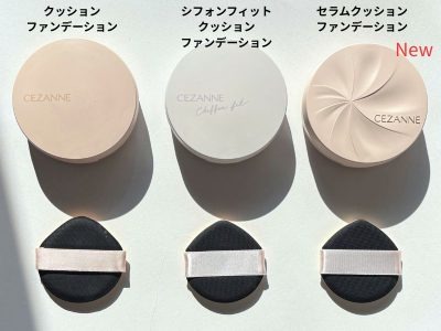 セザンヌのクッションファンデは、過去に、うるおいに満ちたツヤ肌に仕上がる「セザンヌ クッションファンデーション」と、さらりと軽やかなセミマット肌に仕上がる「シフォンフィットクッションファンデーション」の2種類が販売されていました。