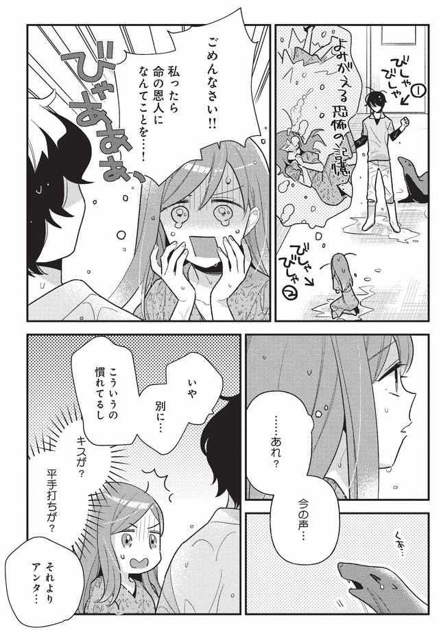 大水槽の前で涙を流していると、コワモテなイケメン飼育員・渡来に「そこに長時間居座ンな」と凄まれ、