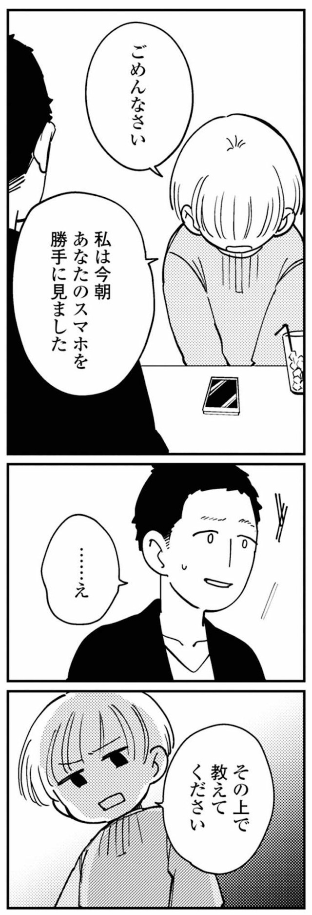 ロック解除された夫のスマホが、ついに妻の手へ。張り詰めた沈黙の中で、中身を確認する妻【夫が裏アカで70人と不倫してました #12】