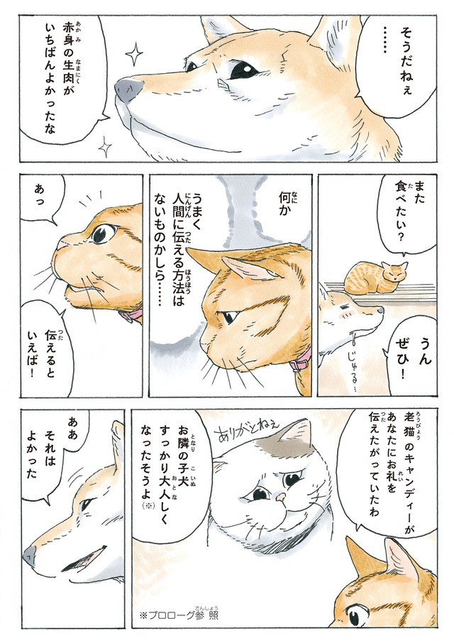 半年前ゲリラ豪雨の日に、ふらりとやってきたアカトラの猫に「マドレーヌ」と名付けたかのこちゃん。そしてマドレーヌ夫人は、老犬の柴犬・玄三郎の妻になる!?