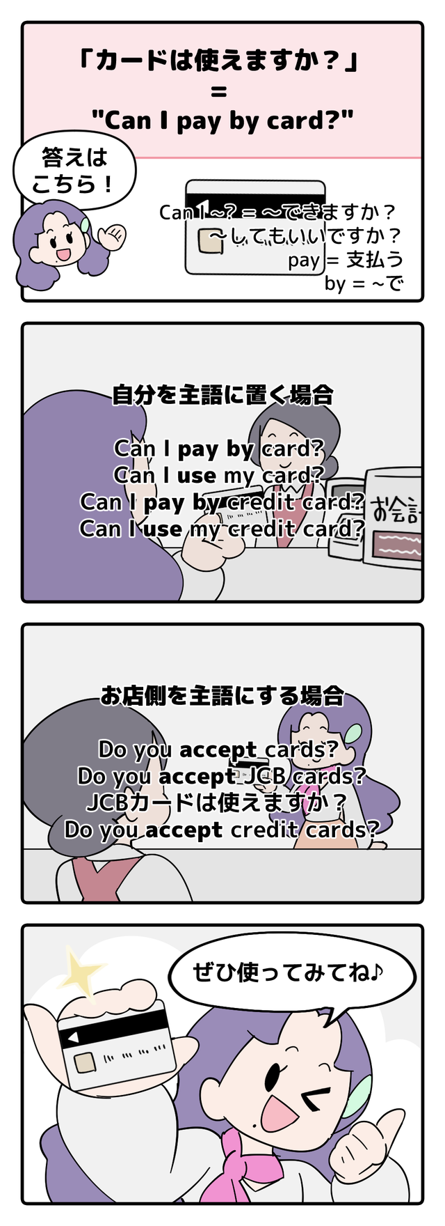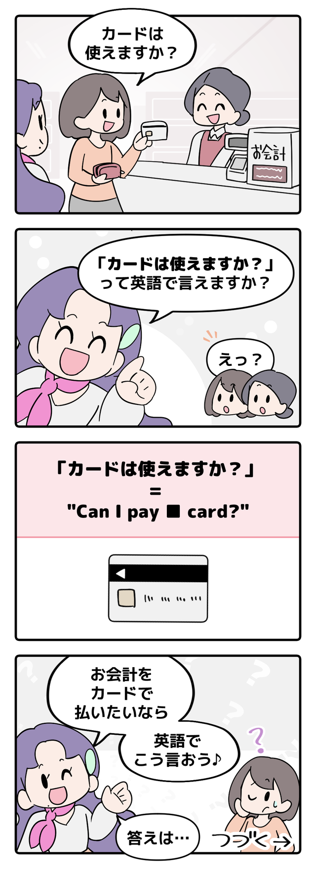 「英語嫌いな日本人をなくしたい!」海外生活や添乗員経験、そしてバイリンガル子育て中の英会話講師・Mrs.服部が、身近な英語表現を漫画&クイズ形式でお届け! 「間違ったら恥ずかしい」じゃなく「伝わればOK」。使えるフレーズをマンガで学びましょう!