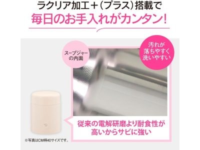 分解せずに洗える「シームレスせん」、汚れがおちやすい「ラクリア加工+(プラス)」を採用。6時間たっても保温力バッチリ!のスープジャー