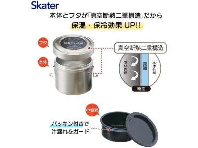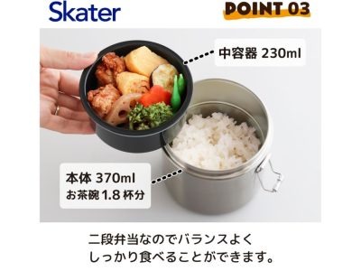 スケーター(Skater) 保温弁当箱 丼ぶり型 600ml 小容量 ステンレス ランチジャー 保温保冷 真空断熱構造 ベーシック STLB1AG-A