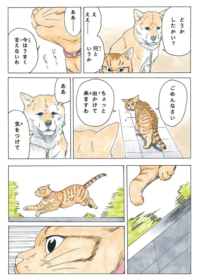 半年前ゲリラ豪雨の日に、ふらりとやってきたアカトラの猫に「マドレーヌ」と名付けたかのこちゃん。そしてマドレーヌ夫人は、老犬の柴犬・玄三郎の妻になる!?