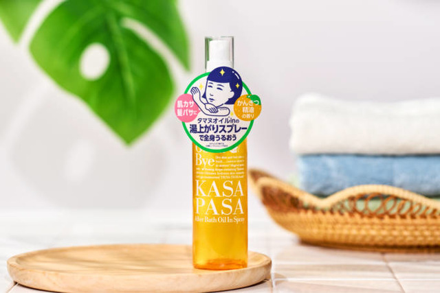 沖縄県産タマヌオイル*を配合。タマヌ(=テリハボク)の種子からわずかしか抽出できない希少なオイルで、優れた保湿力を持ち、乾燥や肌荒れケアに用いられてきた成分。お風呂上がりの乾燥が気になる髪・顔・からだにシュッとひと吹きするだけで、弾けるオイルがうるおいをキープし、全身しっとりとした肌へ導く設計。逆さにしても噴射できる容器仕様で、手が届きにくい背中までしっかりケアできる使い勝手。
