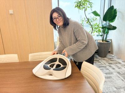 もうひとつ、本日は骨盤底専用EMS「Perine Fit(ペリネフィット)」も試します。膀胱・子宮などの臓器を支え、尿道や肛門の働きに深く関わる骨盤底筋。意識しにくい、鍛えにくい部位ですが、ペリネフィットに1日15分座ることで、集中的なトレーニングができるというもの。