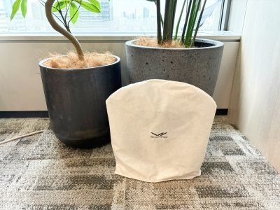 立てて裏返せばそのまま収納可能。専用の袋もついています。しまい込むと使わなくなりますから「家の中に出しておける」デザインにこだわったそう。