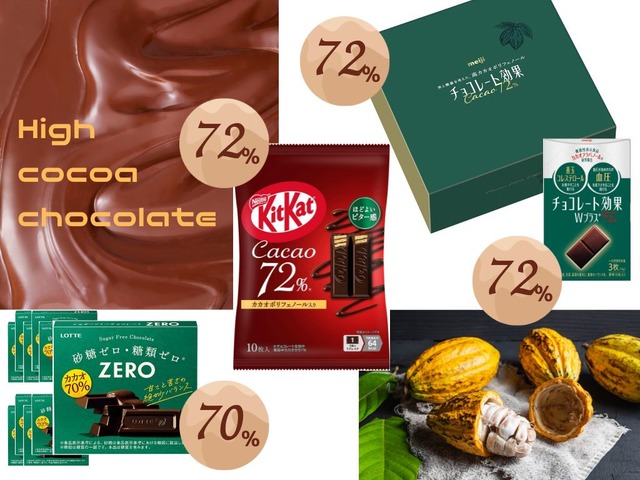 最近よく見かける、「カカオ70%」などの表示がある「高カカオチョコレート」。カカオを70%以上含有し、カカオ以外の成分(砂糖や乳脂肪など)を極力抑えた健康志向のチョコレートです。