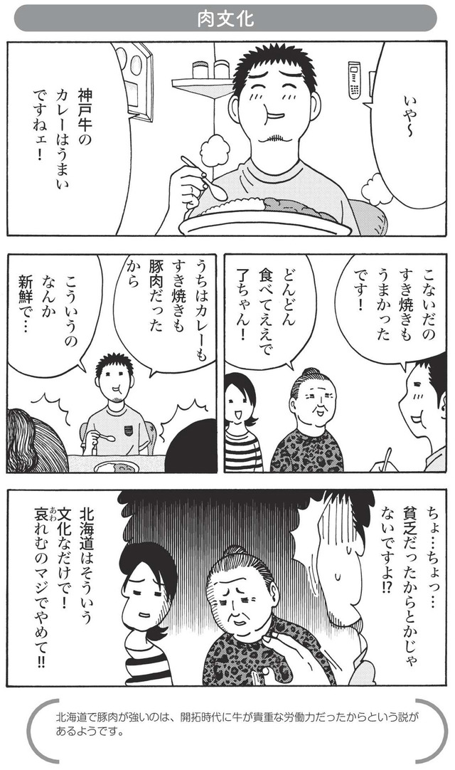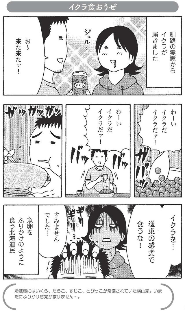 理解できない、だから面白い。鶴が舞い、シカと車が事故る最果ての地・北海道出身の夫。うるさいバスの中、おばちゃんがアメを仕込むコテコテの地・関西出身の妻。凸凹漫画家夫婦が、互いの「あたりまえ」に戸惑い、悶える。文化のズレが愛おしくなる、異色の県民性コミックエッセイ。※本記事は横山了一著の書籍『北のダンナと西のヨメ』から一部抜粋・編集しました。******◀◀【前回】関連記事を読む神戸出身の妻はたまに「し」が「ひ」になる。否定する彼女に、数字を1から順に言ってもらうと?【北のダンナと西のヨメ #12】