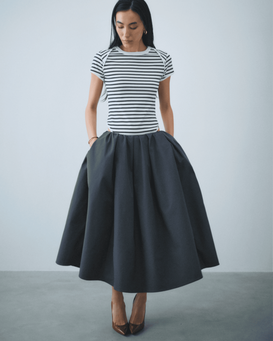 Cotton High-leg Leotard ¥25,300Gathered Volume Skirt ¥58,300