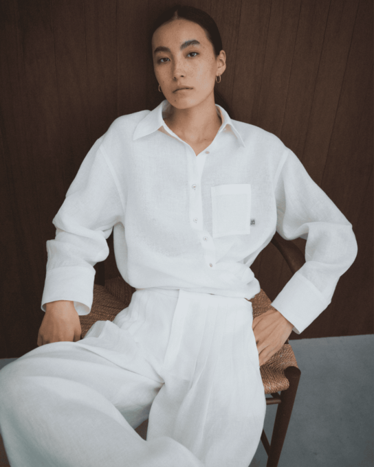 Linen message wrap Shirt ¥42,900Linen relaxed dress Pants ¥53,900
