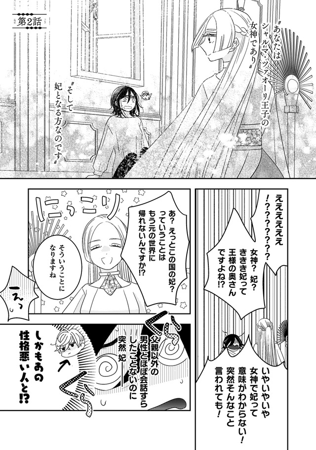 彼女が作った土人形が動きだしたことで、その場に居合わせた美青年から質問攻めにされ、連れて行かれたのは大きな城。彼の名前はシャルマ王子。あさは特殊な力を持つ国を救う女神として、王子の妃になるために召喚されたのだった。