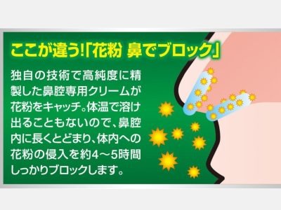 【鼻クリーム】鼻にぬるだけで、花粉の吸入を防止する鼻腔クリーム。高密着フィルター効果で花粉をキャッチ!