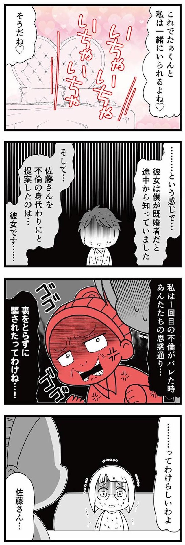 真相を確かめるため、正子は妻とともに親友とその彼を問いただすことにしたのだが――。