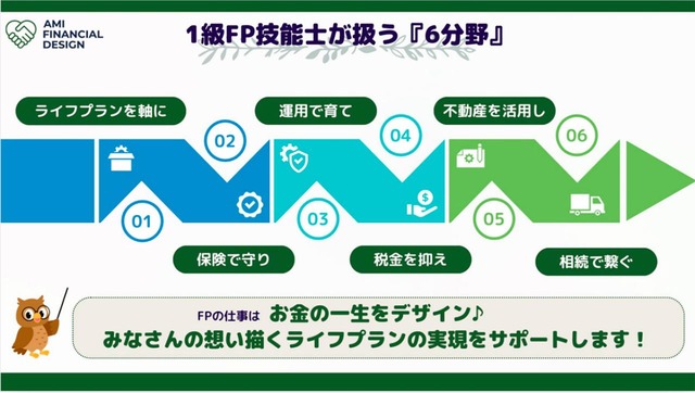 一人一人の人生によりそいながら、人生に必要な6つの分野を総合的に相談しながら、組み立てくれるんです。