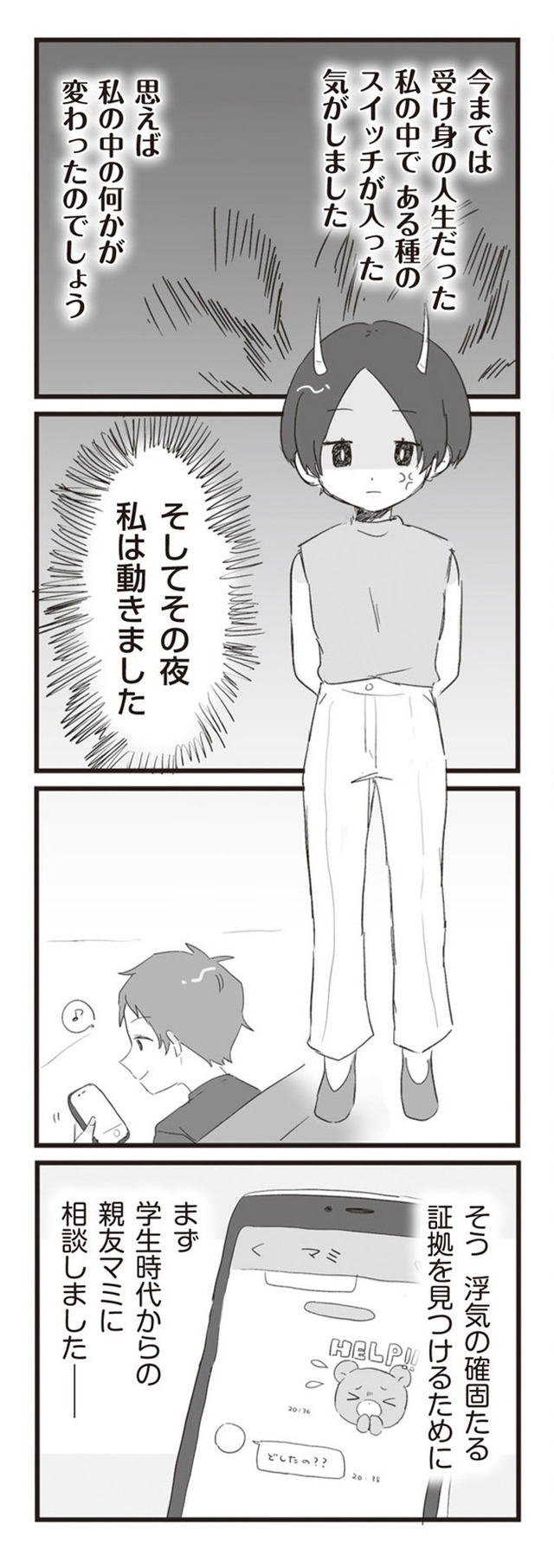 「決定的証拠をつかんでやる」悔しさをバネに、妻・ハッチは探偵顔負けの行動に出ることに! サレ妻が仕掛ける壮大な復讐劇とは!?