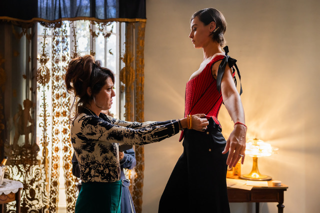 監督の特別な想いから、実際に撮影当時に着用された『山猫』のクラウディア・カルディナーレの赤いドレス、『ルートヴィヒ』のロミー・シュナイダーの衣装、フェデリコ・フェリーニ監督『カサノヴァ』の衣装が劇中に登場しているのも見どころのひとつ。当時のスタイルや豊かな伝統、さらに卓越した職人技にオマージュを捧げている。この度解禁となった予告編は、華やかなスクリーンやステージを支える衣装工房のシーンから始まる。そこは映画監督や衣装デザイナー、フィッティングに訪れる役者たちが絶えず行き交い、熱気にあふれる場所。