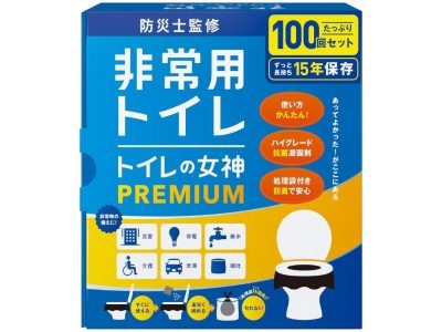 どこでも簡単トイレ トイレの女神PREMIUM 簡易トイレ 【防災士が監修】 15年保存&日本製 携帯/防災/非常用トイレ 防災グッズ 防災ガイドブック付き (100回)