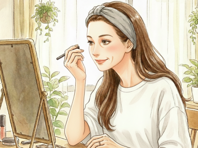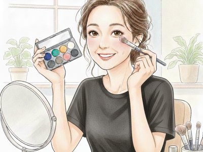 それから、アイラインやマスカラについていえば、乾かすことも大切。ですから、ハンディタイプの小さな扇風機も買うといいですね。まぶたが下がっているからついてしまいやすいので、「乾かし」というひと手間も必要。なんといってもメイクには威力があるので、アイラインやマスカラは目元をぱっちりさせるパワーアイテム。まぶたが下がっていたとしても、メイクすることでなんとかできます。だから、アイラインやマスカラなどをあきらめてはダメ!
