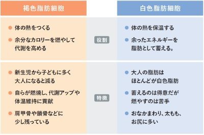 筋肉は熱を生み出し、脂肪はその熱を保つのが役割。でも、例外として自力で発熱できる脂肪「褐色脂肪細胞」があります。赤ちゃんの体がポカポカしているのは、筋肉量が少ない代わりに褐色脂肪細胞が多く、体温をつくれるからです。