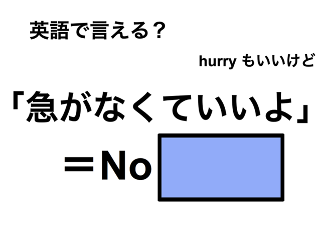 「急がなくていいよ」って英語で言えますか?