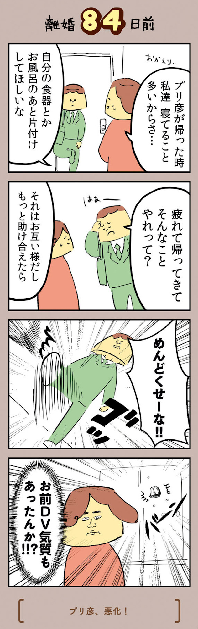 夫のことが「生理的に無理」になってしまったプリ子は、離婚を決意する。