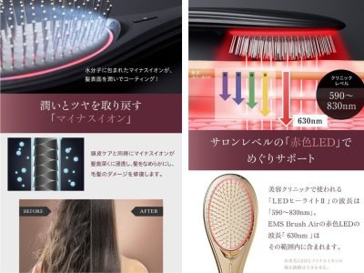 いろんな機能が満載! EMS機能で美髪ケア&顔もリフト。髪の保湿力を高めるマイナスイオン、すこやかな頭皮や髪をはぐくむ赤色LEDも搭載し、とかすだけでエステ級ケア