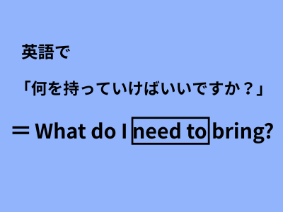 そんな時に使えるのが、「What do I need to bring?」