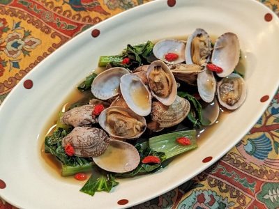 旬の力をまるごといただく「あさりと小松菜のハブ茶蒸し」