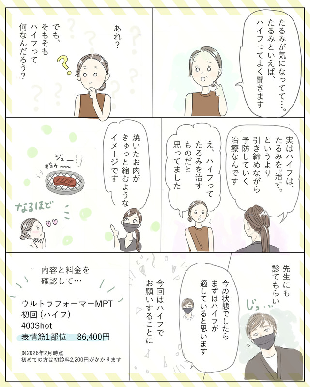 「たるみといえばハイフ」とよく聞くけれど、そもそもハイフって何?今回は、そんな疑問から始まった人生初の“たるみ治療”ハイフ体験をマンガでお届けします!