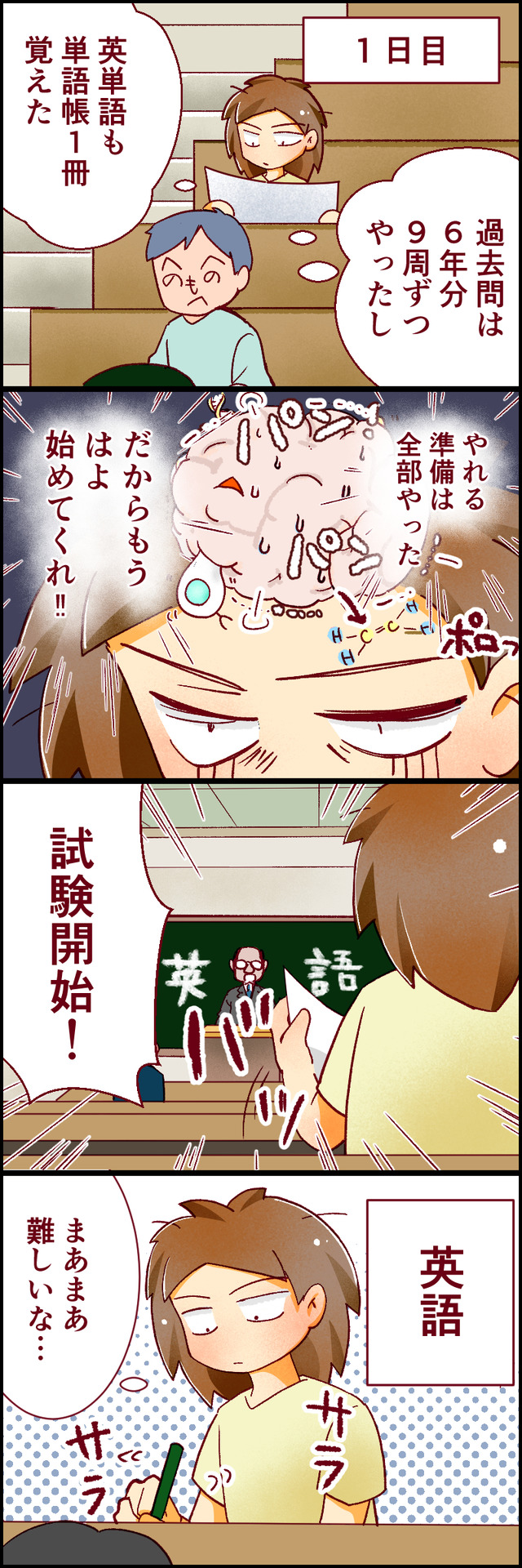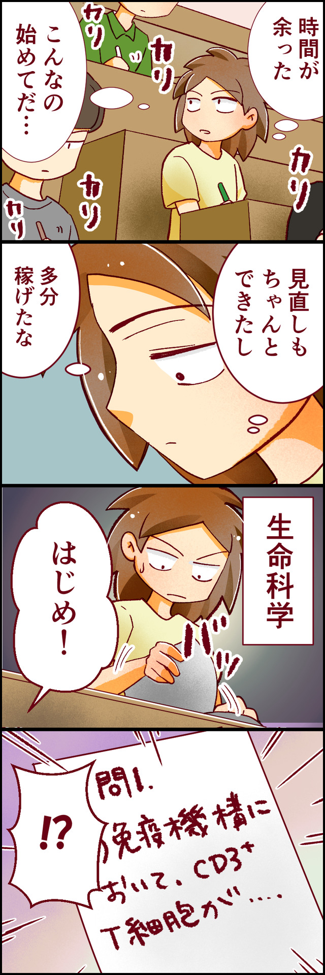 生物化学の問題を見て、驚くさつき。果たしてこの反応は、良いのか、悪いのか…!? ▶▶「アァ、オワッタ…」上昇した私の運が、また下がる。医学部受験の波に翻弄されてでは、オドロキの展開を迎えるさつきの受験当日の様子をお届けします。