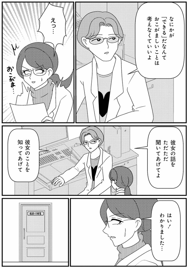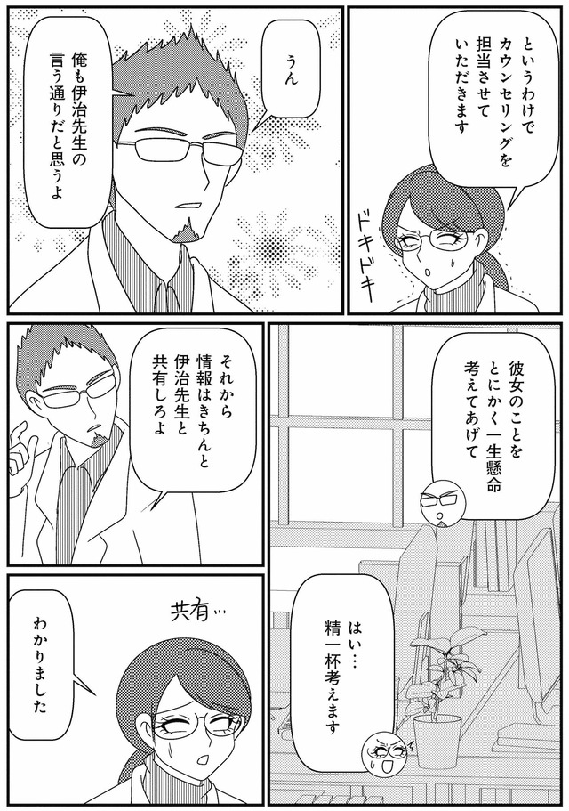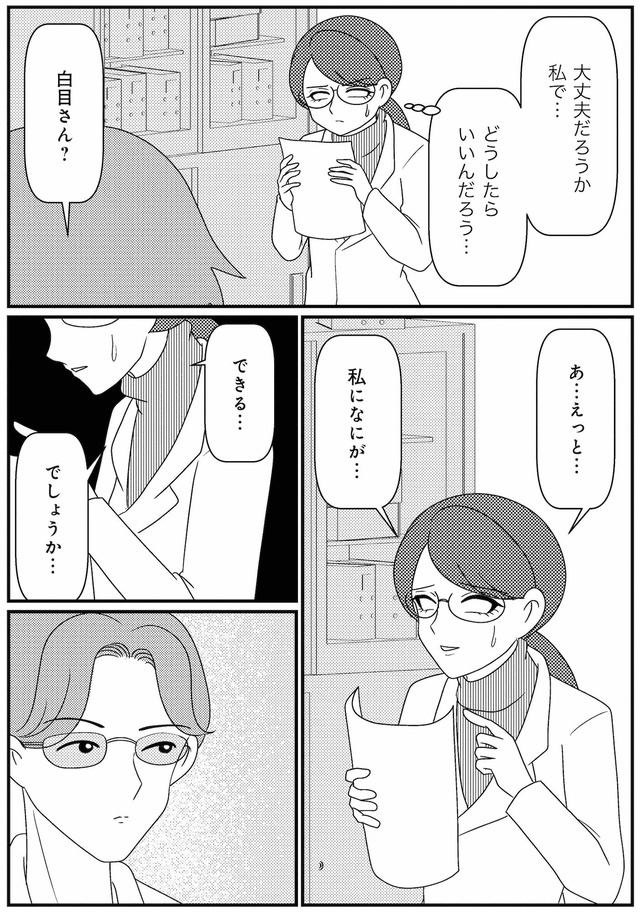 担当心理士の白目みさえは、患者様とのカウンセリングは先行きが見えず思い悩んでいた。
