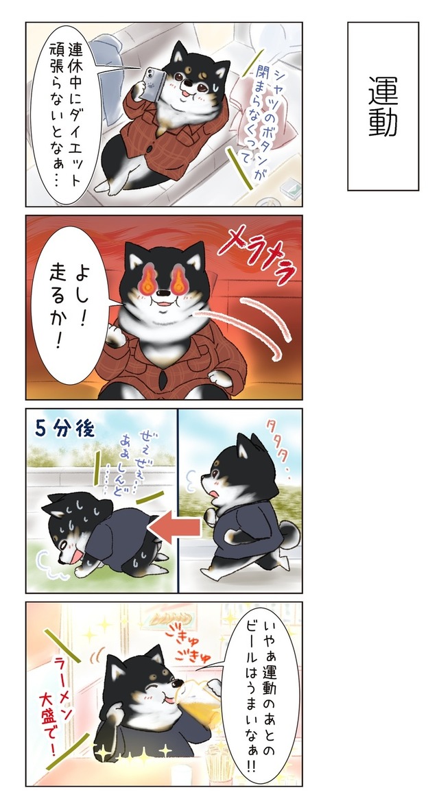 「太っちゃったんだよな」先輩をよく見ると、柴犬のチャームポイントの「あそこ」にお肉が…【がんばれ!しばりーまん #3】