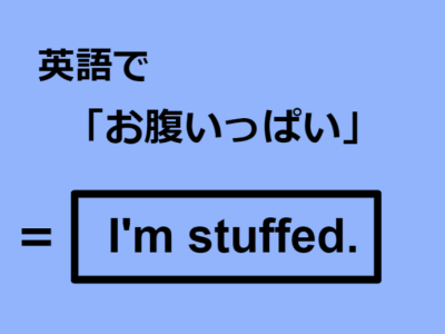 ぬいぐるみのことをstuffed animalといいますね。コットンをぱんぱんに詰めてあるのでこう呼びます。I’m full. よりもっと “お腹いっぱい”が伝わります。